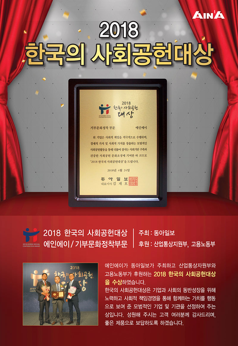 2017年AINA與社會福利共同基金會簽訂了CRM(cause-related marketing)協(xié)議,AINA生產(chǎn)的主要產(chǎn)品艾迪萊茵管理儀受到了廣大顧客的喜愛,銷售后利潤的一部分也捐獻(xiàn)給了老人福利基金用于老人醫(yī)療費(fèi)支援事業(yè)的發(fā)展上面。